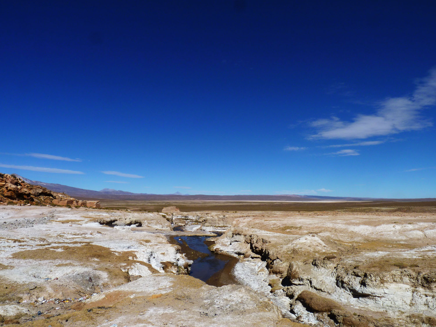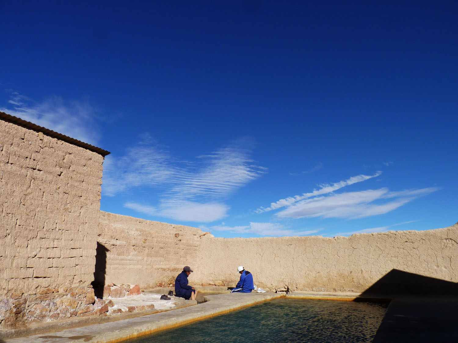 From there, it was through Uyuni, the biggest city around, past Pulacayo, the abandoned mining town, and to the termas (hot springs!) where we had lunch. We were all a bit apprehensive, having been told they weren’t that warm — that was false. In the frigidity of Boliva, they were heaven. And, the setting was absolutely beautiful.